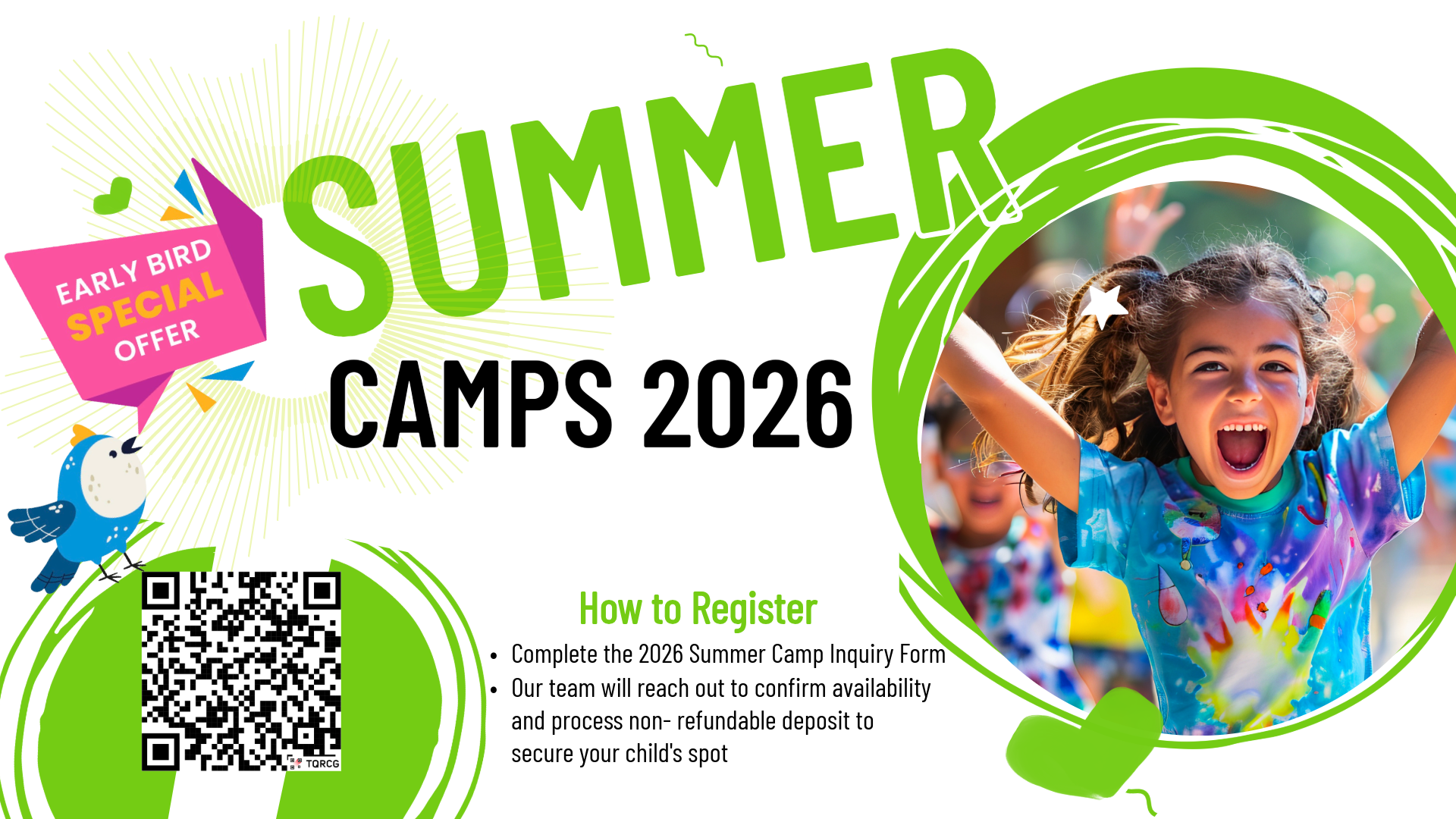 - Members only special rate Summer camp/fall/spring break